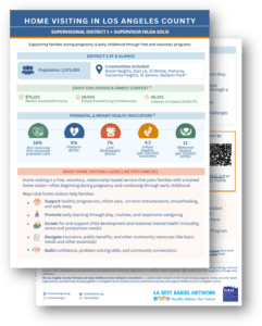 Engage your LA County Supervisor to share how home visiting programs in their district are helping pregnant women and families with young children. See the district-specific materials you can share with them